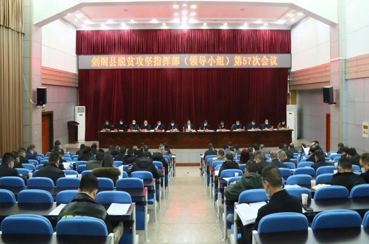 会议传达学习了中央、省市近期脱贫攻坚有关会议及文件精神、全省精准扶贫档案工作视频会议、全省扶贫开发局长会议精神,审议了《剑阁县精准扶贫档案资源建设工作方案》《剑阁县做好扶贫资金项目清理暨扶贫资产管理工作方案》《关于开展村级集体扶贫产业园清理工作的方案》,安排了节前帮扶及特困人员慰问工作。