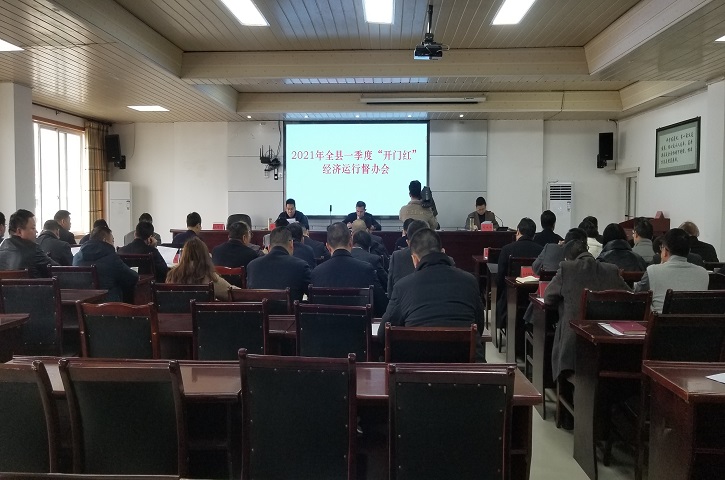 3月5日,剑阁县2021年一季度“开门红”经济运行督办会在县发改局召开。县长范为民、常务副县长冀健华、副县长王刚出席会议。会上通报了一季度经济运行和三月份项目投资入库工作,分析研判形势,增添措施抓落实。县统计局、农业农村局、经信科局等单位围绕完成一季度“开门红”指标任务发言做了表态发言。