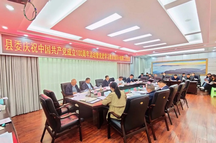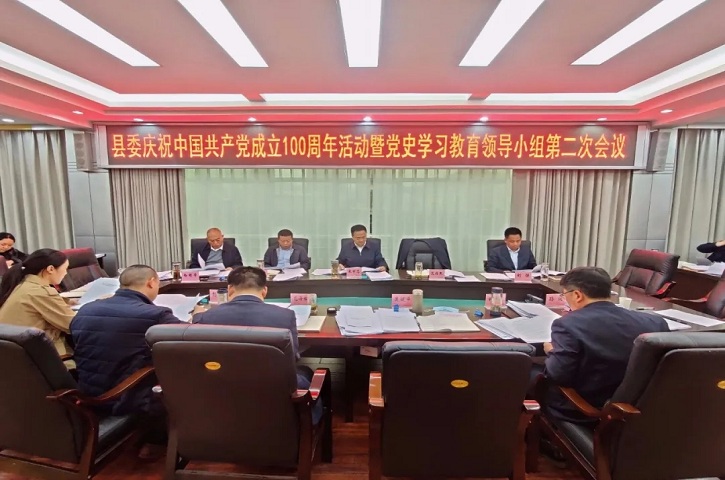 会议深入学习了习近平总书记在党史学习教育动员大会上重要讲话精神、省委书记彭清华在全省党史学习教育动员大会上重要讲话精神以及市委书记王菲在市委庆祝中国共产党成立100周年活动暨党史学习教育领导小组第一次会议上的讲话精神;审议了我县党史学习教育工作方案。