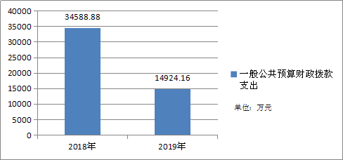 2019年一般公共预算财政拨款支出14924.16万元,占本年支出合计的99.47%。与2018年相比,一般公共预算财政拨款减少19664.72万元,下降56.85%。主要变动原因是2019年公用经费、项目资金预算减少。