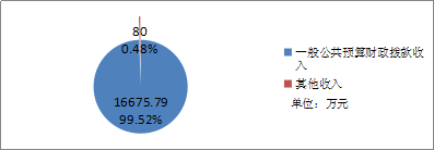 2019年本年收入合计16755.79万元,其中:一般公共预算财政拨款收入16675.79万元,占99.52%;其他收入80万元,占0.48%。