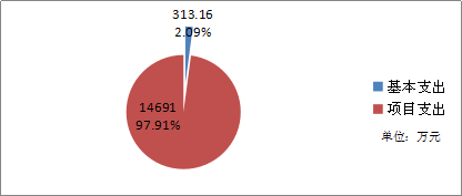 2019年本年支出合计15004.16万元,其中:基本支出313.16万元,占2.09%;项目支出14691万元,占97.91%。