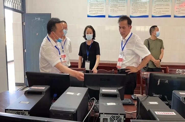 范为民一行先后来到剑阁职中、剑门关高级中学考点以及高考指挥中心,对高考考务筹备、网络监控平台运行、考点周边环境噪音整治、安全监测、饮食安全等各项考务工作进行了检查,并重点检查食堂、广播室、视频监控室和考点保供电供水和环境布置情况。