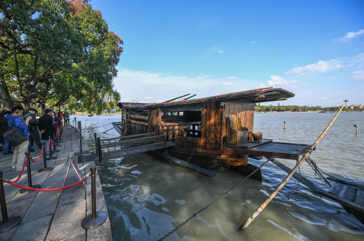 停靠在浙江嘉兴南湖湖心岛的南湖红船。新华社记者 徐昱 摄
