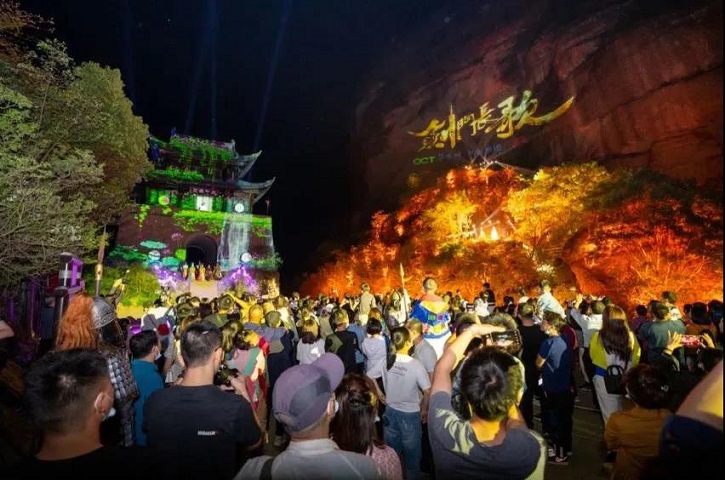 打造了全国首个实景崖壁灯光演艺秀《剑门长歌》,开发剑门夜市、剑门赶集、剑门手信、“飞雪剑门关VR”“网红喊泉”等网红产品,点击率达千万人次。