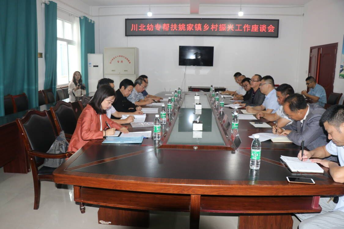 座谈会上,姚家镇党委书记孙翠东首先对川北幼专的驻村工作队的帮扶工作给予充分肯定,其次对元宝村区位条件、脱贫攻坚、基础设施、产业发展、困难短板等方面情况做了详细介绍,并对后期元宝村帮扶需求进行汇报。