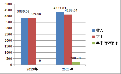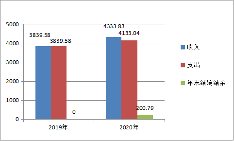 2020年财政拨款收入总计4333.83万元,支出总计4133.04万元,年末结转200.79万元。与2019年相比,财政拨款收入总计增加494.25万元,增长12.87%,支出总计增加293.47万元,增长7.64%。主要变动原因是教职工人员增加,工资增长。