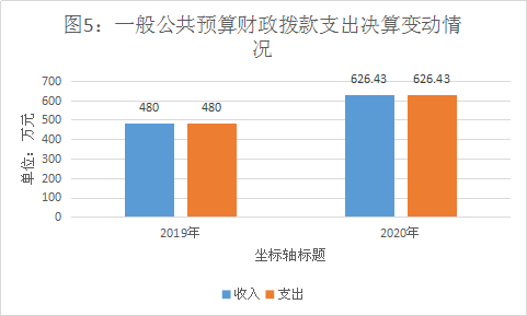 2020年一般公共预算财政拨款支出626.43万元,占本年支出合计的99.05%。与2019年相比,一般公共预算财政拨款支出增加146.43万元,上升30.50%。主要变动原因是行政区划调整后,人员及经费相应增加。