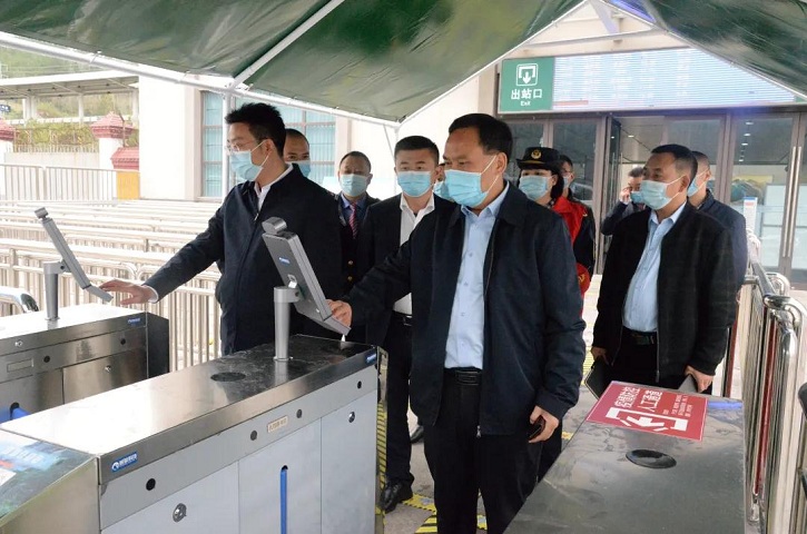在剑门关高铁站,杨祖斌查看了闸机的使用情况,并询问了旅客数量、去向、来源。他说,要做好技防加人防的结合文章;对中高风险地区及有本土新冠病例和无症状感染者报告地区的来(返)剑人员要严格排查管控。