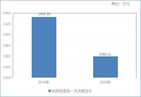 2020年财政拨款收、支总计1360.12万元。与2019年相比,财政拨款收、支总计各减少73.23万元,下降5.11%。主要变动原因是2020年项目资金减少。