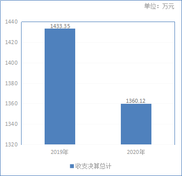 2020年度收、支总计1360.12万元。与2019年相比,收、支总计各减少73.23万元,下降5.11%。主要变动原因是2020年项目资金减少。