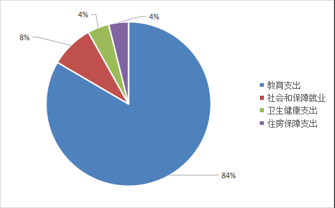 2020年一般公共预算财政拨款支出1096.39万元,主要用于以下方面:一般公共服务(类)支出0万元,占0%;教育支出(类)900.06万元,占82.09%;科学技术(类)支出0万元,占0%;文化旅游体育与传媒(类)支出0万元,占0%;社会保障和就业(类)支出100.33万元,占9.15%;卫生健康支出50.06万元,占4.57%;住房保障支出45.93万元,占4.19%。