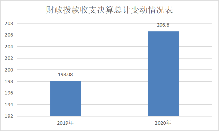 2020年财政拨款收、支总计206.6万元。与2019年相比,财政拨款收、支总计各增加8.52万元,增长4.12%。主要变动原因是人员经费的变动。