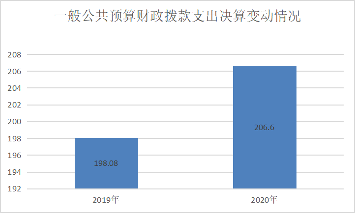 2020年一般公共预算财政拨款支出206.6万元,占本年支出合计的100%。与2019年相比,一般公共预算财政拨款增加8.52万元,增长4.12%。主要变动原因是人员经费的变动。