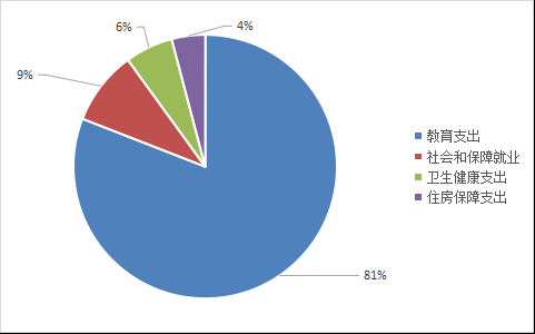 2020年一般公共预算财政拨款支出216.96万元,主要用于以下方面:一般公共服务(类)支出0万元,占0%;教育支出(类)175.55万元,占81%;社会保障和就业(类)支出19.74万元,占9%;卫生健康支出12.78万元,占6%;住房保障支出8.89万元,占4%。