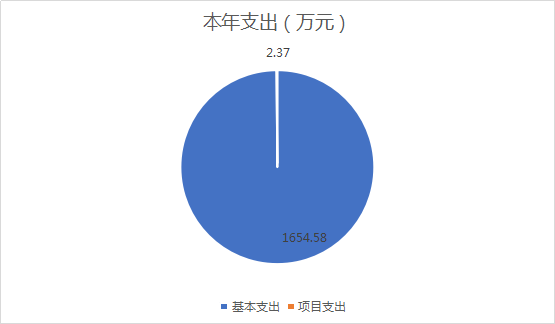 2020年本年支出合计1656.96万元,其中:基本支出1654.58万元,占99.86%;项目支出2.37万元,占0%;上缴上级支出0万元,占0.14%;经营支出0万元,占0%;对附属单位补助支出0万元,占0%。