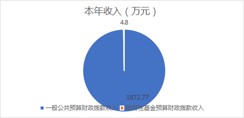 2020年本年收入合计1877.57万元,其中:一般公共预算财政拨款收入1872.77万元,占99.7%;政府性基金预算财政拨款收入4.8万元,占0.3%;上级补助收入0万元,占0%;事业收入0万元,占0%;经营收入0万元,占0%;附属单位上缴收入0万元,占0%;其他收入0万元,占0%。
