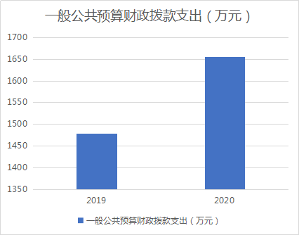 2020年一般公共预算财政拨款支出1654.58万元,占本年支出合计的88.34%。与2019年相比,一般公共预算财政拨款增加175.26万元,增长10.59%。主要变动原因是学生增加,人员经费增加。