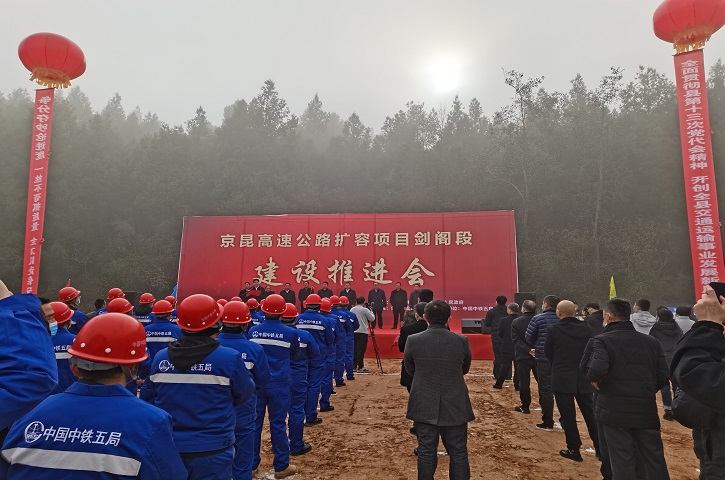近日,京昆高速广元至绵阳段扩容项目剑阁段建设推进会在武连镇寨桥村召开,县四套班子分管领导、县级相关部门负责人、武连镇镇村干部和群众代表及项目业主、承建单位、监理单位代表参加会议,县政协主席向坤道出席会议并讲话。