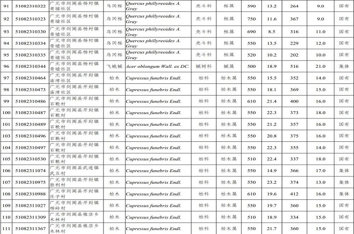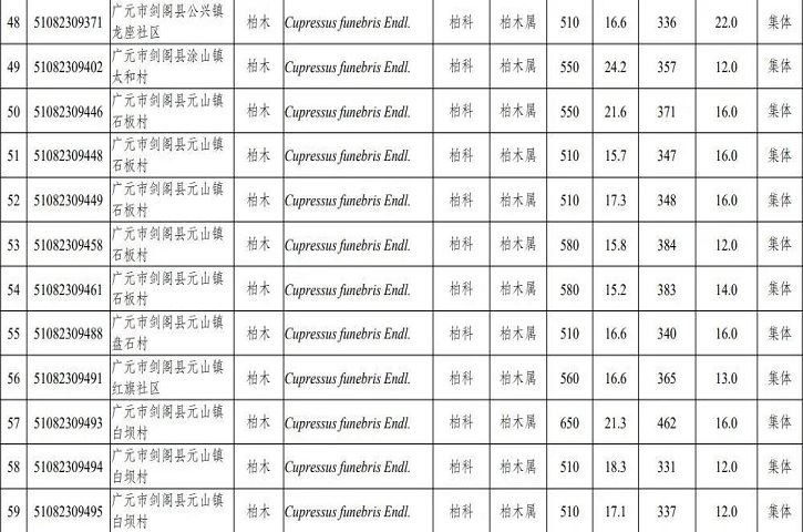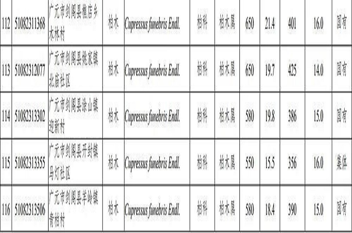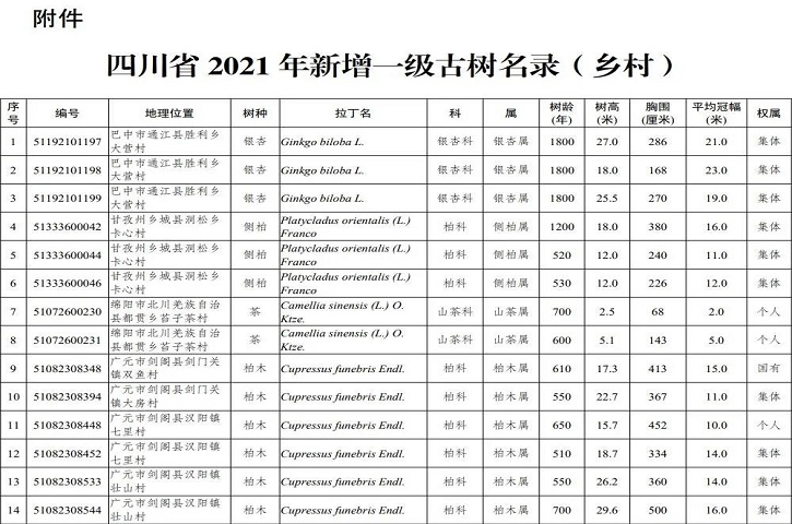 12月9日,省政府发布通告,公布2021年四川省新增一级古树和名木名录。根据《四川省古树名木保护条例》,2021年新认定四川省一级古树及名木122株,其中一级古树117株、名木5株,其中剑阁有108株。