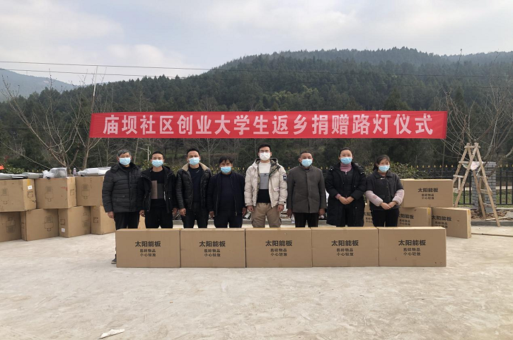 庙坝社区位于剑阁县羊岭镇,公共基础设施相对薄弱,路灯较少,每到夜晚,灯火阑珊,居民在这种昏暗的环境下出行即不安全也不方便,加装路灯也成为了居民迫切心愿。98年出生的庙坝社区创业大学生陈楠在了解到相关情况后主动联系社区表达了捐赠意愿。