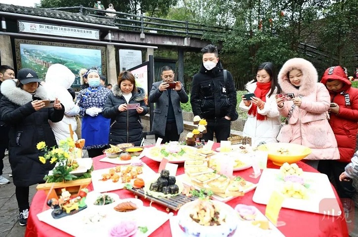 省级非遗白龙花灯表演、羊岭布艺童帽制作、豆腐宴展示……1月28日上午,剑阁县剑门关景区南门热闹非凡,特色表演让各地游客大饱眼福。