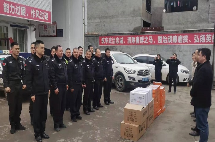 慰问中,张登科书记充分肯定了过去一年里镇派出所在维护社会稳定、疫情防控、打击各类违法犯罪、服务人民群众等工作中作出的贡献,并表达由衷的感谢和崇高的敬意。临近春节,希望派出所全体干警、辅警、超限站的同志们砥砺奋进、牢记使命,认真履职,以更加饱满的热情,更加扎实的作风,全力以赴做好春节期间各项维稳工作。