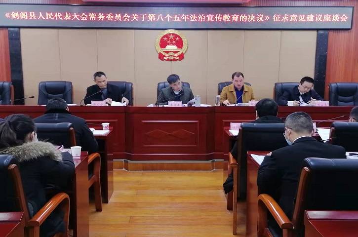 会议传达学习第九次全国法治宣传教育工作会议和四川省法治宣传教育工作会议精神,以及广元市关于开展法治宣传教育的第八个五年规划(2021- 2025年);征求《剑阁县法治宣传教育第八个五年规划》《剑阁县法治社会建设实施方案》《剑阁县人民代表大会常务委员会关于开展第八个五年法治宣传教育的决议》意见建议;全面部署 “八五”普法工作。县委常委、宣传部部长、县守法普法协调小组组长廖兴泉出席会议并讲话,县人大常委会副主任郑东方主持会议。县守法普法协调小组各成员单位、“法律7+3”牵头部门主要领导,相关乡镇负责人参加了会议。