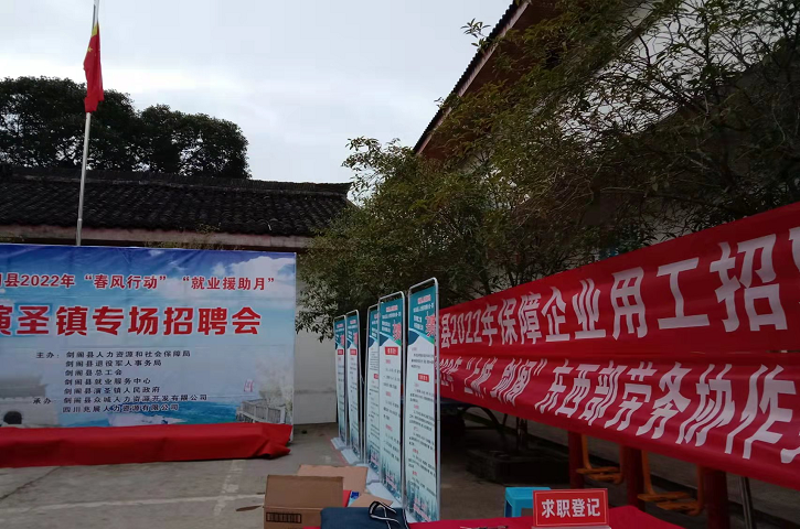 3月1日上午,剑阁县2022年“春风行动”“就业援助月”专场招聘会在演圣镇举行,此次招聘会由剑阁县人力资源和社会保障局、剑阁县退役军人事务局 、剑阁县总工会、剑阁县就业服务中心、演圣镇人民政府联合主办,剑阁县众诚人力资源开发有限公司、四川兆展人力资源有限公司承办。