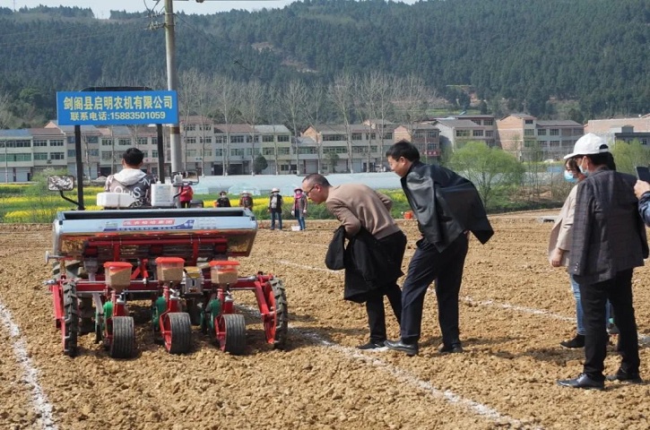 “2米5开厢,玉米行与第一行大豆之间的距离必须要保证60公分,大豆我们一般种4路,大豆与大豆之间的行距保证在30公分,株距保证在7到10公分左右……”在剑阁县大豆玉米带状复合种植暨春耕生产现场会上,来自四川农业大学教授刘卫国正在给全县各乡镇负责人、公兴镇村民讲解大豆玉米带状复合种植技术。