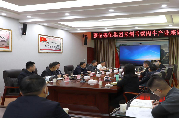 会上,县委书记杨祖斌充分肯定了雅拉德荣集团在肉牛行业上发展优势及其运作模式。与集团投资剑阁县发展肉牛产业地理环境优势、政策扶持、品牌特色、互利共赢、可持续发展发展模式、基地选址、工作专班、风险防控等方面作了交流。根据市第八次党代会提出“突破性发展肉牛羊产业”以来,剑阁县委、县政府高度重视,围绕“1233”执政兴县战略和“3+3+3”产业发展体系,突破性发展肉牛羊产业氛围好,老百姓养殖积极性高。希望通过今天的座谈了解和实地考察,最终项目能够落户剑阁并带动当地老百姓参与代养,实现互利共赢,共同致富。同时杨祖斌还强调,县四大班子要高度重视,由唐家华副县长牵头,相关部门密切配合,进一步与雅拉德荣集团深入交流,并沟通对接合作相关事宜。