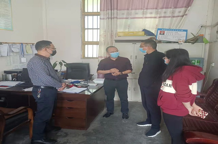 3月15日,县法院院长舒强到鹤龄镇督导重点场所常态化疫情防控措施落实情况,镇党委书记何思志陪同。