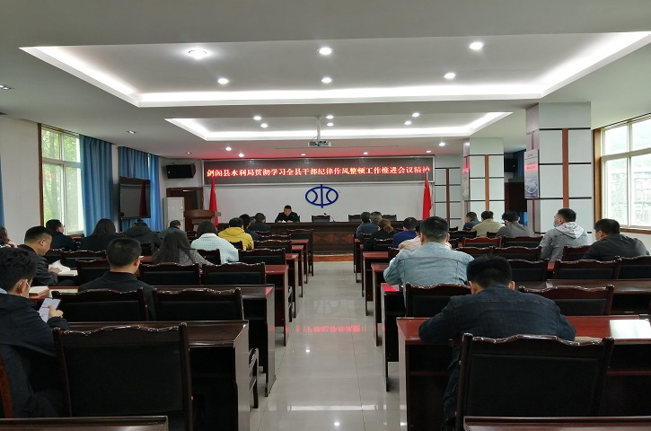 近日,在全县干部纪律作风整顿工作推进会后,剑阁县水利局组织局机关全体职工、各下属单位负责人立即召开了水利系统纪律作风整顿工作推进会,会上学习传达了全县干部纪律作风整顿工作推进会议精神,安排部署了相关工作。会上,机关党委书记杨方龙同志传达了县纪委书记、县监委主任、县干部纪律作风整顿领导小组办公室主任杜嫣然同志的讲话精神。