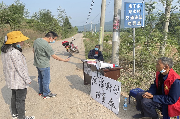 “杨镇长,我们知道最近疫情形势严峻,你放心,外来人员台账都是建立好了的......我们肯定把卡点值守好,让疫情进不了店子”。除开展疫情防控“敲门行动”、劝停农村家宴、做好重点场所和“七小”场所等常态化防控措施,店子镇在全镇范围内8处交通要道关键点和各村主路口设立疫情防控值守卡点,主要对进入店子镇辖区的每一辆车和所有人员进行排查,坚持以两个“不放过”(不放过每辆车、不放过每个人),两个“必查”(必查行程码、必查健康码)为原则,并对外来人员开展当前政策宣传,全方位排查外来人员,做到不漏一车,不漏一人,严防死守,构筑疫情防控坚固防线。