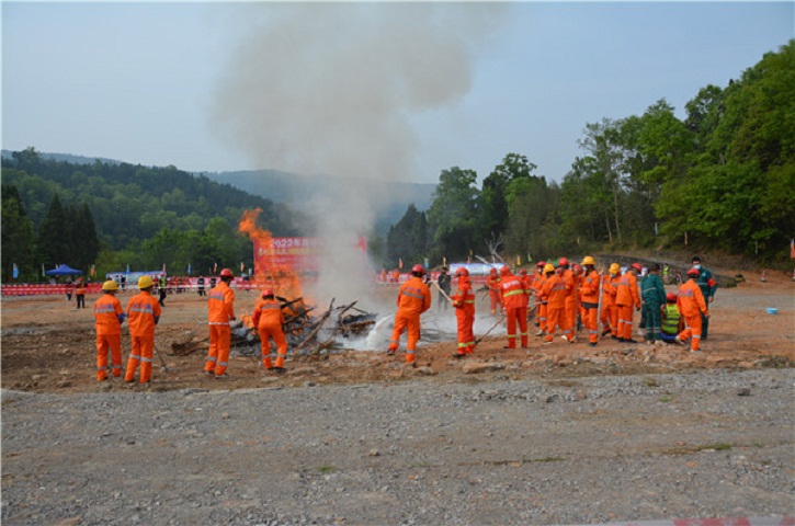 本次演练主要包括下达演练指令、预警监测报告、前期处置、启动应急预案、联合实施扑火等9个程序,现场分为综合协调组、应急抢险组、义务扑救组等9个组。在演练现场,队员运用砍刀、铁扫把、消防车、便携式灭火枪等器具模拟砍伐隔离带、打火、伤员救治、清场、安全撤离、余火清理、现场留守等后续工作。整个演习过程紧张有序,充分显示了应急队员的快速反应能力和实战技巧,演练达到了预期目的。