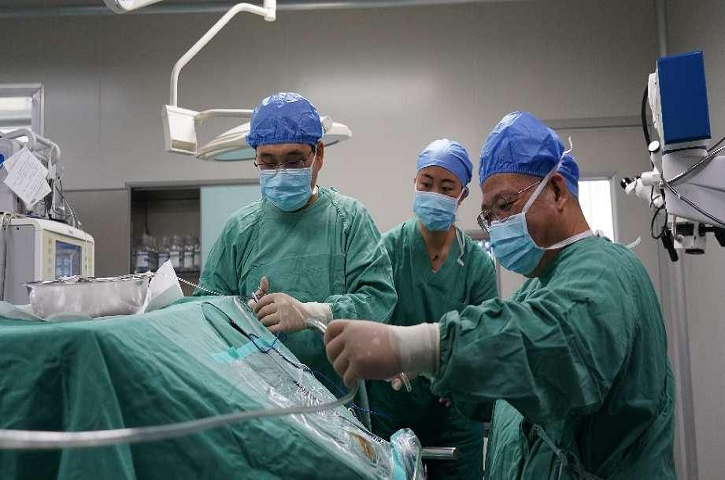 ▲丽水市中心医院王保平指导神经外科手术