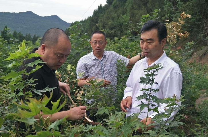 ▲“天府学者”赵善廷在元宝枫种植基地指导技术