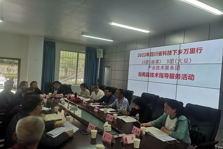 4月27日,省农科院作物所研究员蒲晓斌团长带队的油菜科技团、南充市农业科学院研究员陈胜荣团长带队的大豆科技团一行9人在剑阁县开展了首次科技帮扶服务。