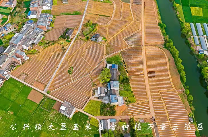 健全机制,落地铿锵有力。强化组织领导。成立以县委副书记任组长的领导小组,组建了多部门协调的工作小组,各乡镇成立相应领导机构,形成了“县乡一体化”的领导构架。强化责任落实。制定《剑阁县2022年大豆玉米带状复合种植“33111工程”扶持办法(试行)》,全县建成“公兴--白龙、元山--王河、剑门关--汉阳”3个万亩大豆玉米带状复合种植示范区;乡镇建成30个大豆玉米带状复合种植示范片;全县完成10万亩大豆玉米带状复合种植面积;建立1套生产技术服务体系;建立1条集大豆生产、加工、销售于一体的全产业链。2022年实现大豆种植23.2万亩、产量3万吨以上。县委农村工作领导小组制定了关于切实抓好2022年大豆玉米带状复合种植示范推广的实施方案,分解目标任务,明确实施内容、技术路径、操作方式、报账措施等,督促各乡镇按照方案要求开展扩种任务各项工作落实。强化考核激励。县委农村工作领导小组将大豆扩种和大豆玉米带状复合种植、消灭耕地撂荒、防止耕地“非粮化”等内容纳入粮食安全责任清单管理,对各乡镇实行绩效考核,同时成立专项工作督导组加强督查指导,加强工作落实、进行统筹指导、定期任务通报。