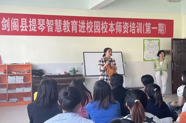 “短短六天的时间,我从零基础到学会了小提琴的基本演奏,虽然很辛苦,但学到了很多的提琴知识。本次活动后我会总结学习成果,将提琴智慧教育带回学校,带到孩子们的身边,让更多的孩子喜欢小提琴,也让提琴智慧教育真正地在剑阁落地生根。”剑阁中学教师赵国玉表示。