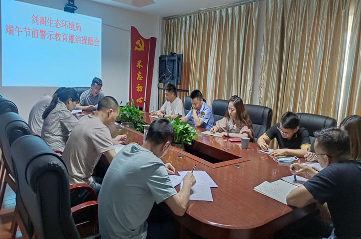 为进一步增强干部职工的廉洁自律意识,引导全局干部职工知敬畏、存戒惧、守底线,营造出风清气正的过节氛围。6月1日,剑阁生态环境局召开端午节前廉政提醒及警示教育会,会议由分管领导梁俊武主持,中层以上干部参加会议。