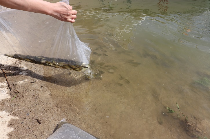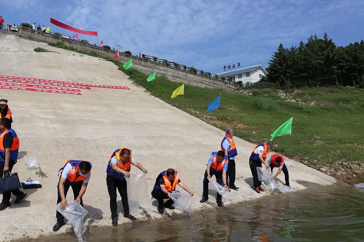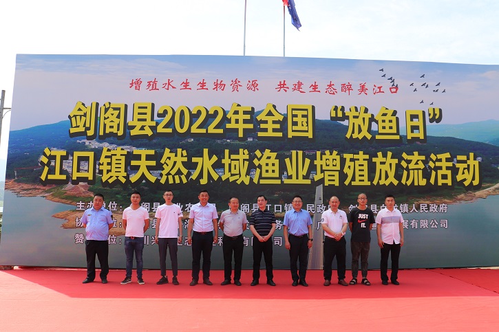 今年6月6日是全国第八个“放鱼日”。为引导群众关心、参与嘉陵江保护治理。6月6日,由县农业农村局、江口镇人民政府主办,县亭子湖和升钟湖发展事务中心、广元市生态渔业发展有限公司、四川兴合生态农业科技有限公司协办的剑阁县2022年全国“放鱼日”江口镇天然水域渔业增殖流放活动在江口镇海事处码头举行,活动现场共计投放白甲鱼、草鱼、鳙鱼、鲢鱼等各类鱼苗27万尾。