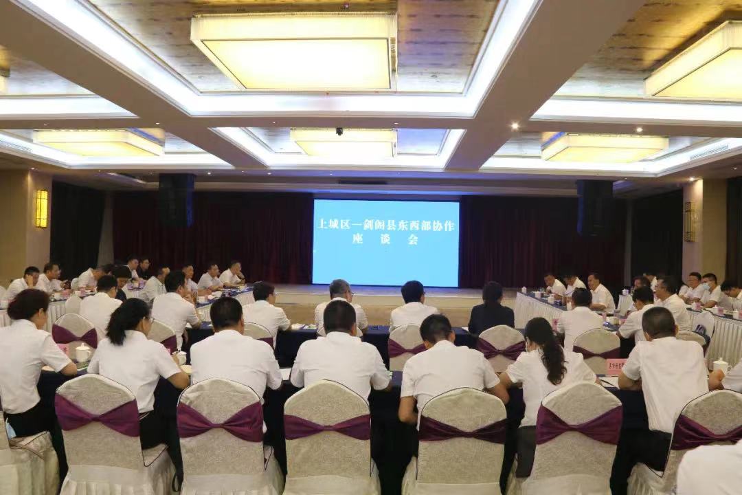 近日,上城区—剑阁县东西部协作座谈会召开。县委书记杨祖斌,上城区委副书记、区长惠海涛出席并讲话,县委副书记、县长范为民主持,县委副书记冀健华参加。