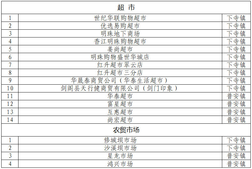 关于公布临时性社会管控期间新老县城城区超市、农贸市场、药店应急保供名单的通告