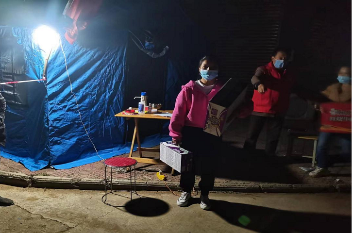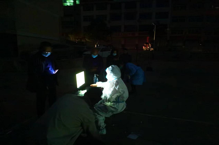 不分昼夜,人员在“疫”线坚守。交通路口是疫情防控的前沿阵地,为强化交通管控,演圣镇在辖区全面布设13处交通卡点,统筹党员、社会志愿者、常职干部,24小时不间断值班值守,加强车辆、人员流动管控,耐心做好防疫政策宣传,对于不符合通行条件的车辆,及时劝返,坚决筑牢疫情防控坚实屏障,形成有效闭环。为科学有序做好每一次核酸检测工作,镇疫情防控工作人员连夜清点分发物资,镇村干部在天亮之前前往各核酸检测点位做好现场布置和物资准备,同时按照不落一户、不漏一人的原则还积极开展“敲门行动”和“上门服务”,并逐户核查建立人员台账,做好宣传引导,全面提升核酸检测效率。