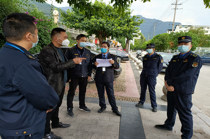 (图为:联合执法组各相关组成部门排查清江河剑阁职中段污染源)