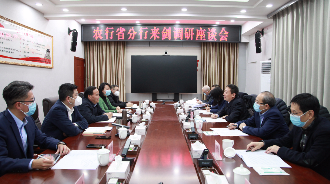 12月8日,农行省分行党委书记、行长孙景伟带队前来剑阁县调研指导金融服务工作,座谈听取剑阁县经济社会发展、乡村振兴金融创新示范区建设等情况,共话政银合作新机遇新局面。县委书记杨祖斌出席座谈并汇报交流工作。