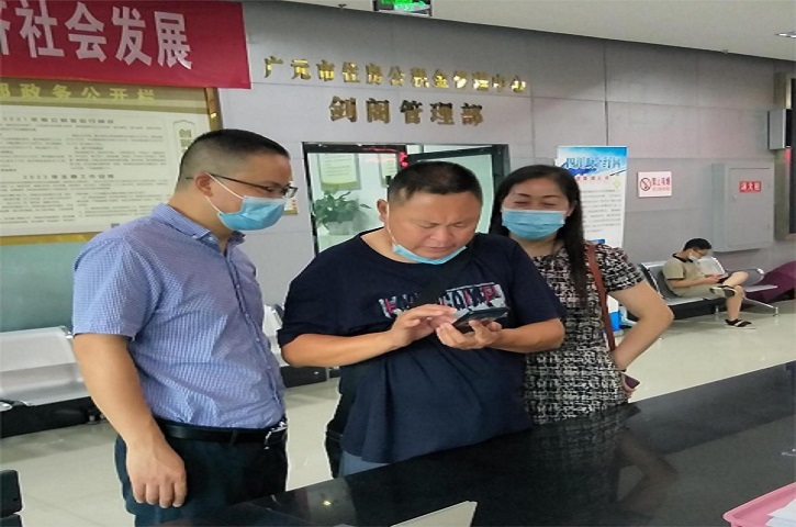 管理部副主任指导办事群众使用手机公积金App办理退休提取