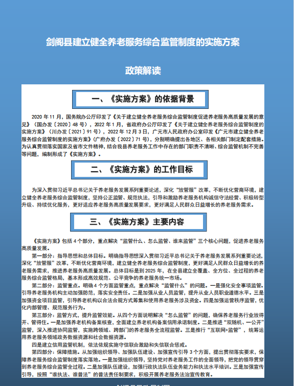 图解:《剑阁县建立健全养老服务综合监管制度的实施方案》