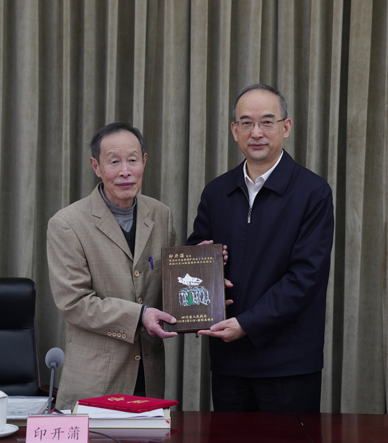 3月21日,国际森林日四川生物多样性保护工作座谈会在成都召开。省委副书记、省长黄强出席会议并为中国科学院成都生物研究所原研究员、生态学家印开蒲颁发奖牌和证书。